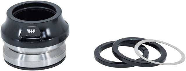 The We The People Compact Headset is a high-quality headset designed for use with integrated headsets. It features precision sealed bearings and includes a custom CNC Alloy top cap and a selection of spacers (3mm, 5mm, 8mm and 10mm) to help you fine-tune your front end. The top cap and first spacer are designed as one piece, and the headset comes with all the necessary washers, bearings, and spacers. The Compact Headset is finished in black and is designed to provide smooth, reliable performance.